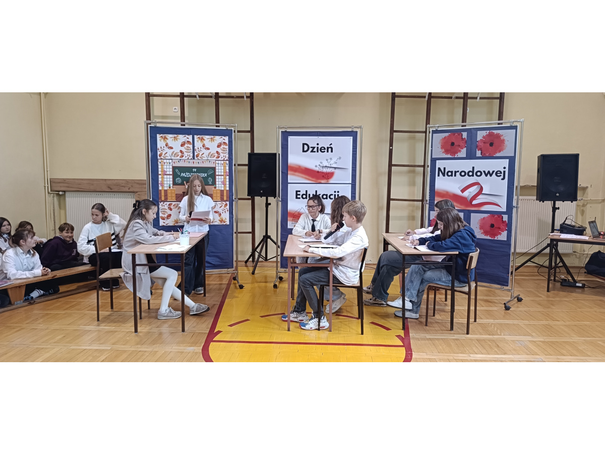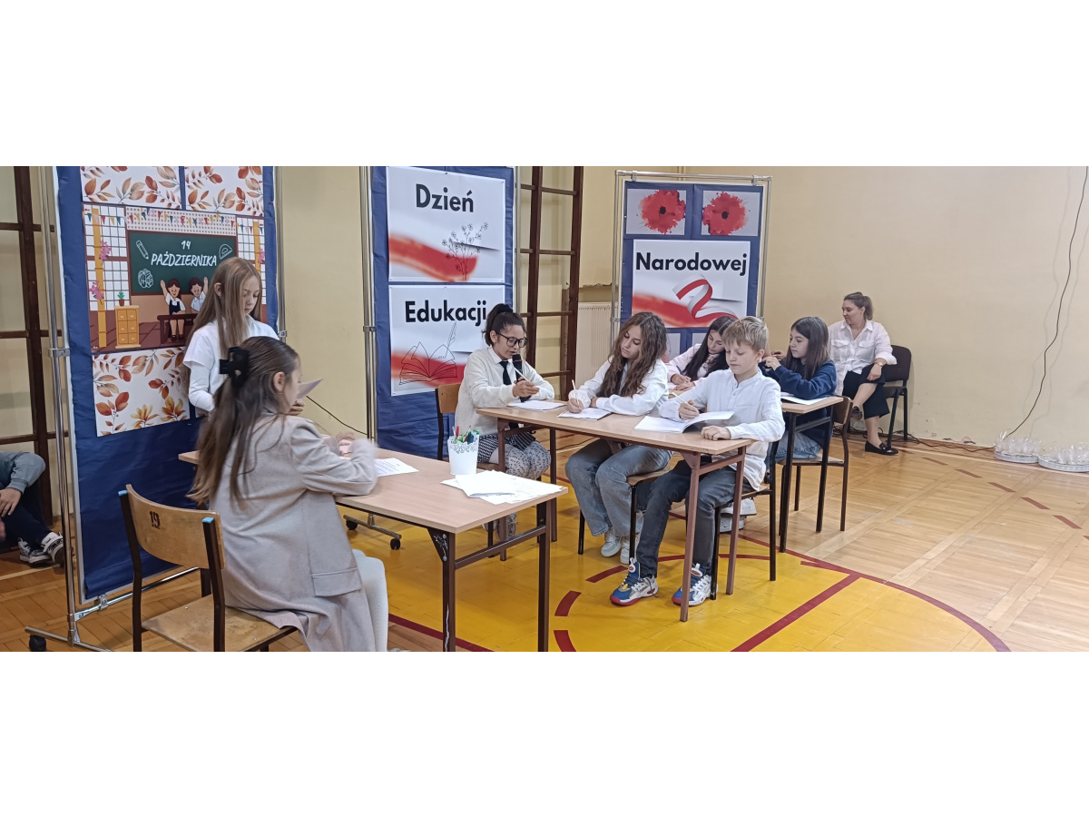 10 października odbyła się uroczysta Akademia z okazji Dnia Edukacji Narodowej. Pełen humoru i muzyki program przygotowali uczniowie klasy 5A wraz z wychowawcą. Dodatkowo, w stronę nauczycieli, pracowników i społeczności szkolnej popłynęły życzenia od Samorządu Uczniowskiego oraz Dyrekcji Szkoły. Z okazji Dnia Edukacji Narodowej składamy serdeczne życzenia szczęścia i radości dla wszystkich Nauczycieli, Pracowników i Uczniów Naszej Szkoły!