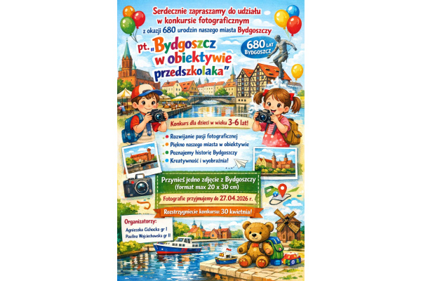 Czytaj więcej!Zapraszamy do wzięcia udziału w konkursie "Bydgoszcz w obiektywie przedszkolaka". Szczegóły na plakacie.