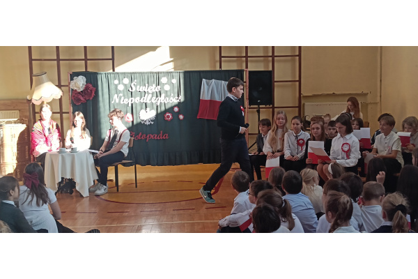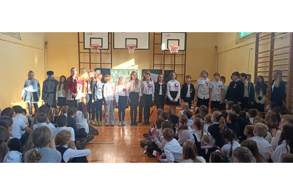 7 listopada społeczność szkoły wzięła udział w uroczystym apelu z okazji Narodowego Święta Niepodległości. Akademię przygotowali uczniowie klasy 5B. Wszyscy zebrani odśpiewali hymn narodowy. Podczas przedstawienia można było usłyszeć również inne pieśni patriotyczne. Wybrzmiały ważne słowa o bolesnej historii naszej Ojczyzny, o wolności, suwerenności i niepodległości, o wartościach, które tworzą naszą tożsamość narodową – naszą Polskę.