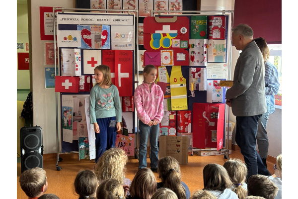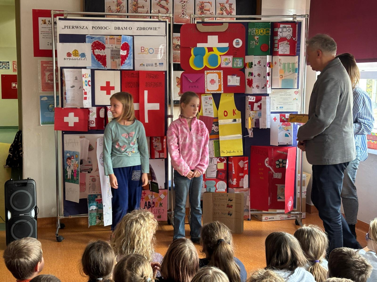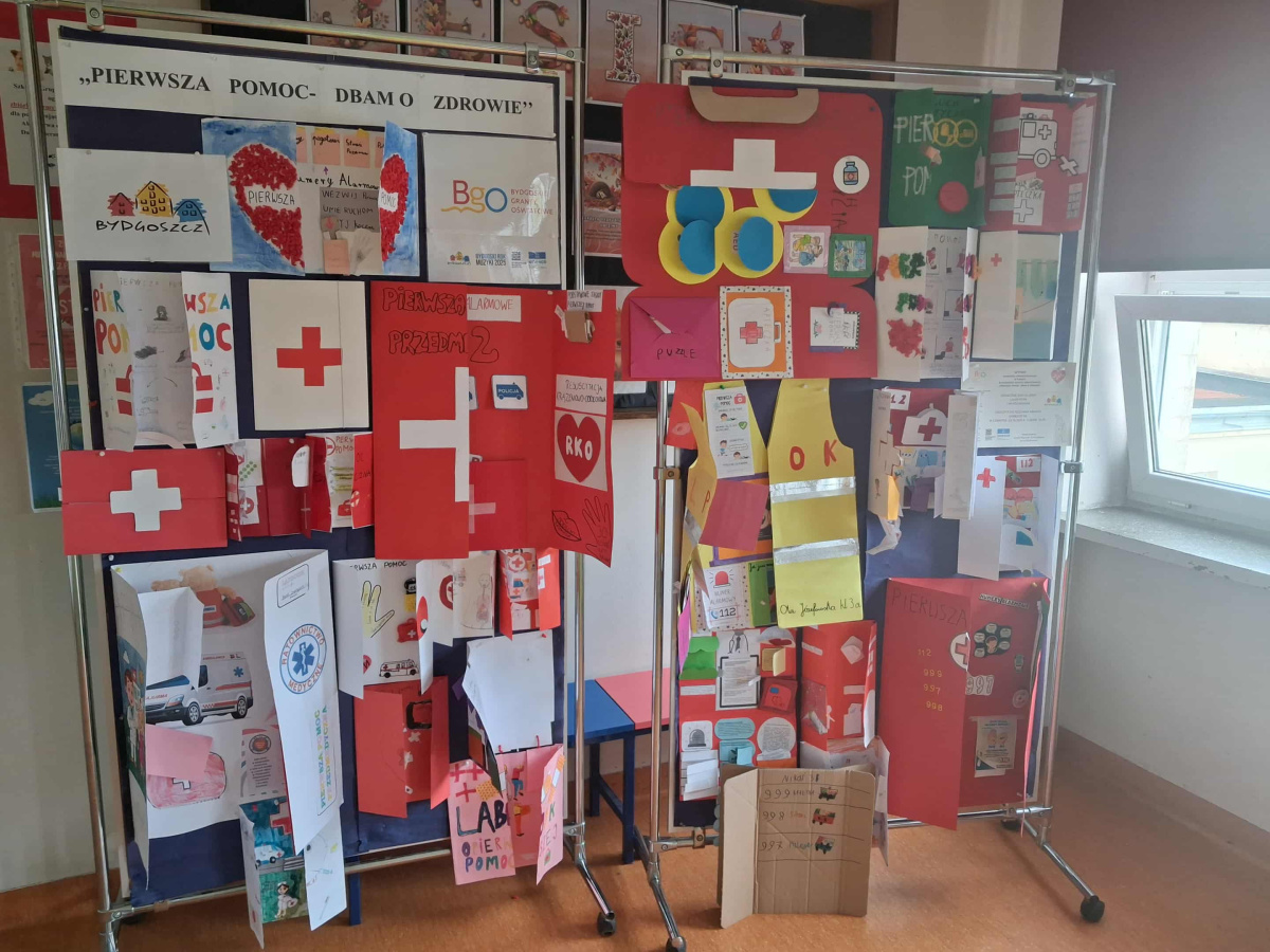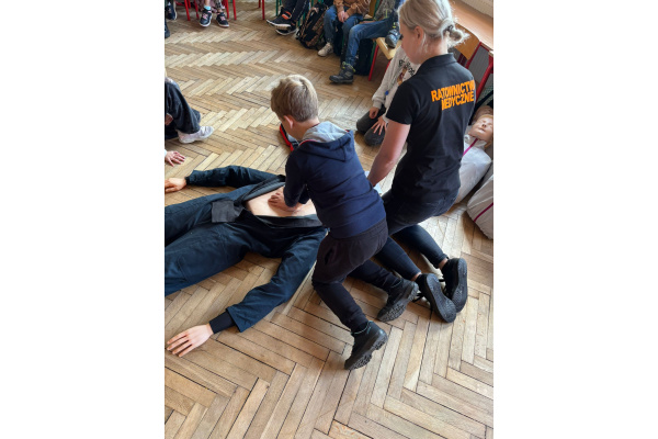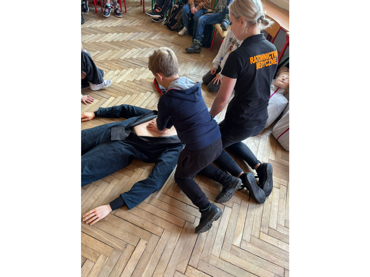 Zajęcia z ratownikiem medycznym. Odbyły się warsztaty z zakresu pierwszej pomocy przedmedycznej. Uczniowie poznali zasady postępowania w sytuacjach zagrożenia życia, nauczyli się wykonywać resuscytację krążeniowo-oddechową oraz udzielać pomocy osobom poszkodowanym. Zajęcia miały na celu profilaktykę wypadków i urazów poprzez naukę właściwego reagowania. Konkurs „Pierwsza pomoc – dbam o zdrowie”. Zorganizowano konkurs na najciekawszy lapbook promujący zdrowy styl życia i zasady pierwszej pomocy. Konkurs pełnił funkcję edukacyjną i profilaktyczną – motywował uczniów do poszerzania wiedzy, współpracy i twórczej aktywności.