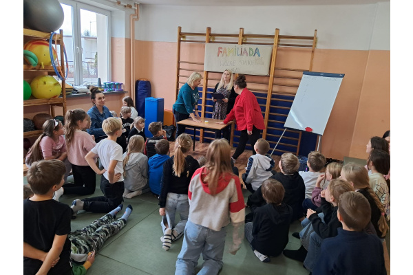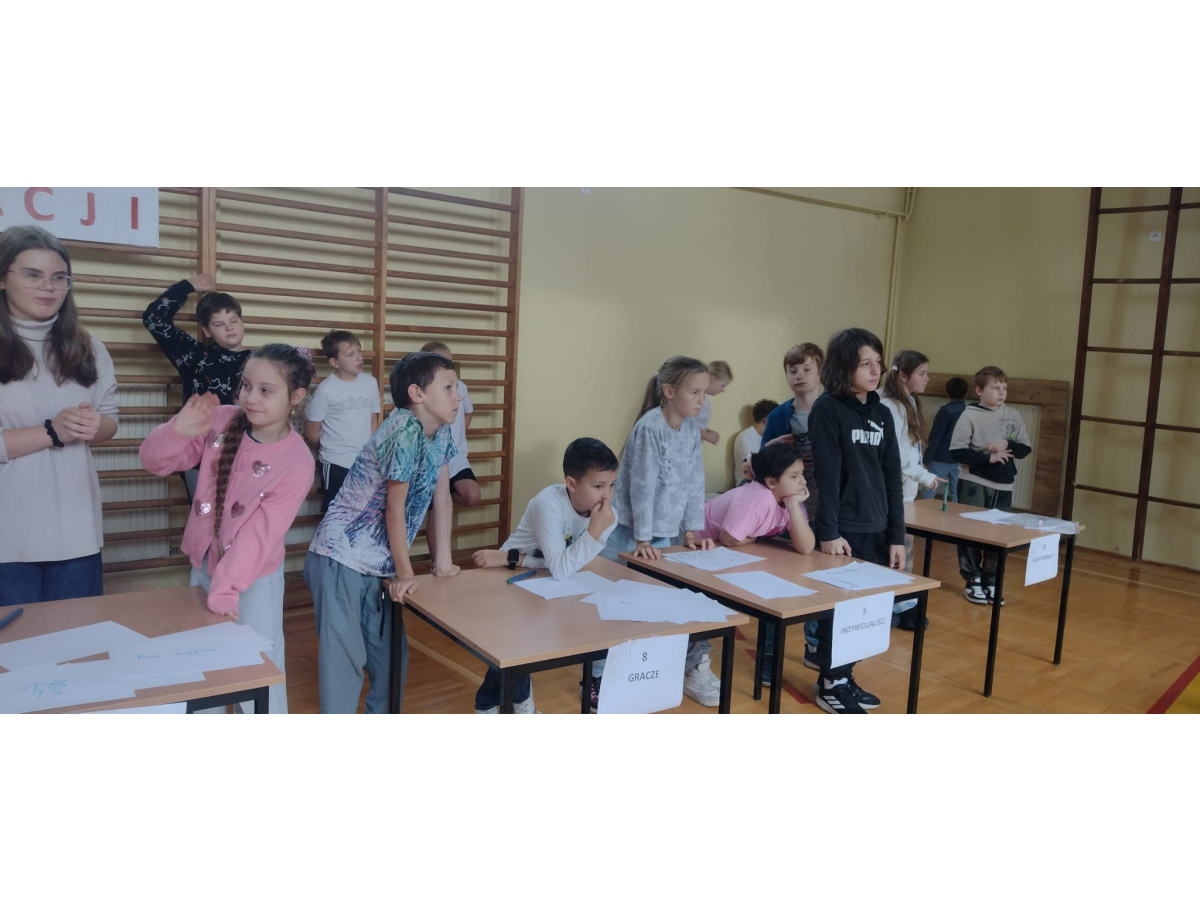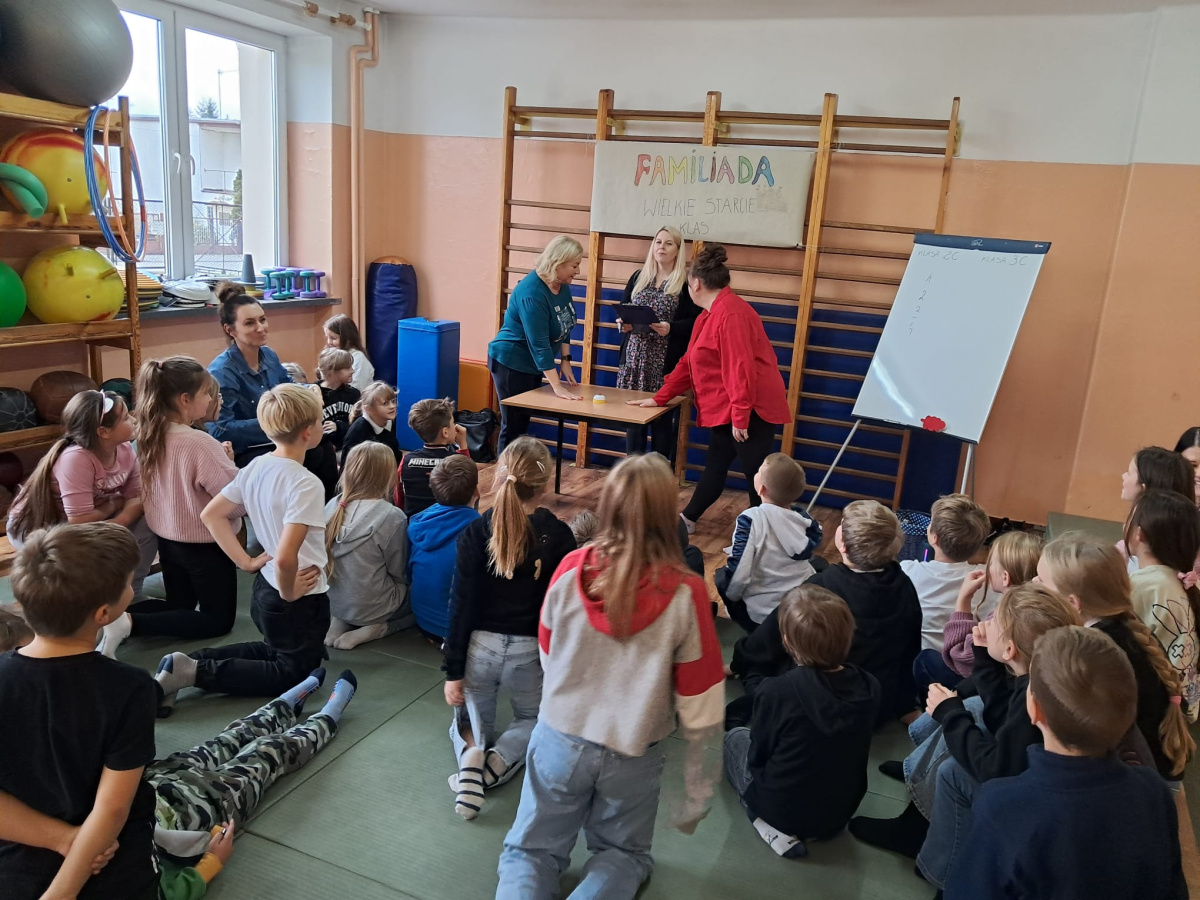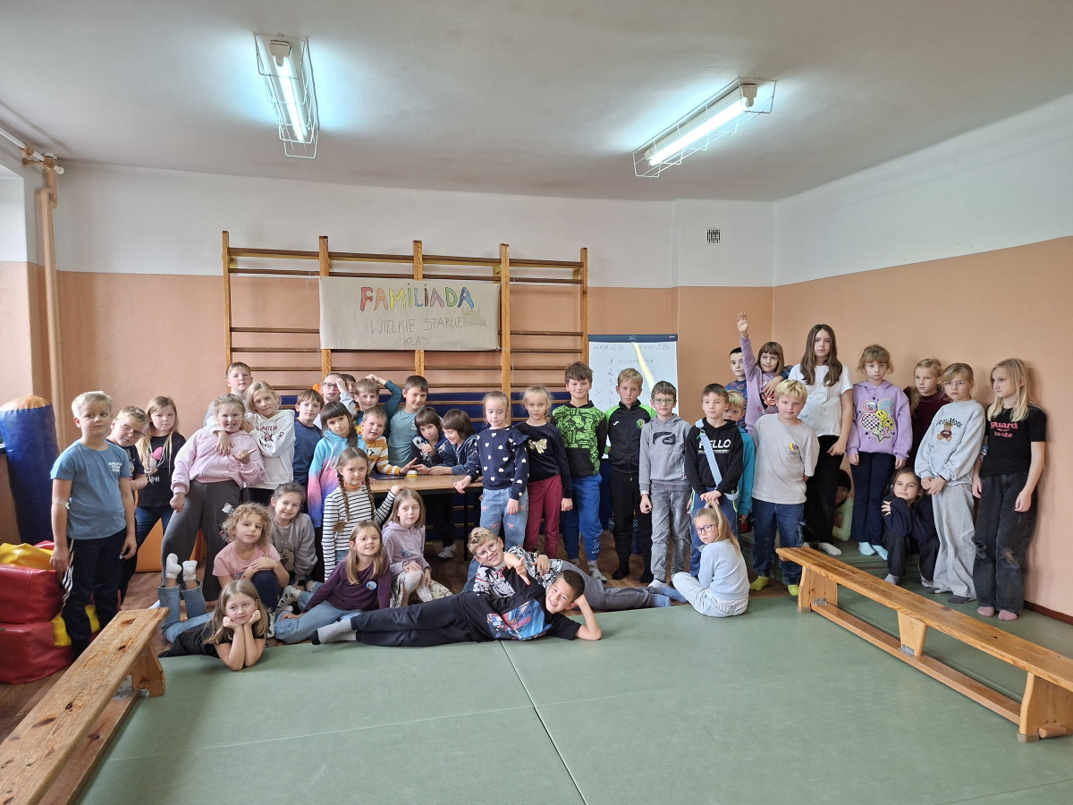 We wtorek, 28 października, odbyło się wielkie starcie klas 2 i 3 w formie emocjonującego teleturnieju „Familiada”. Było mnóstwo śmiechu, zdrowej rywalizacji i radości ze wspólnej zabawy. Nauczyciele dzielnie kibicowali uczniom, a uczniowie wspierali swoich nauczycieli, pomagając im w rozwiązywaniu zadań.