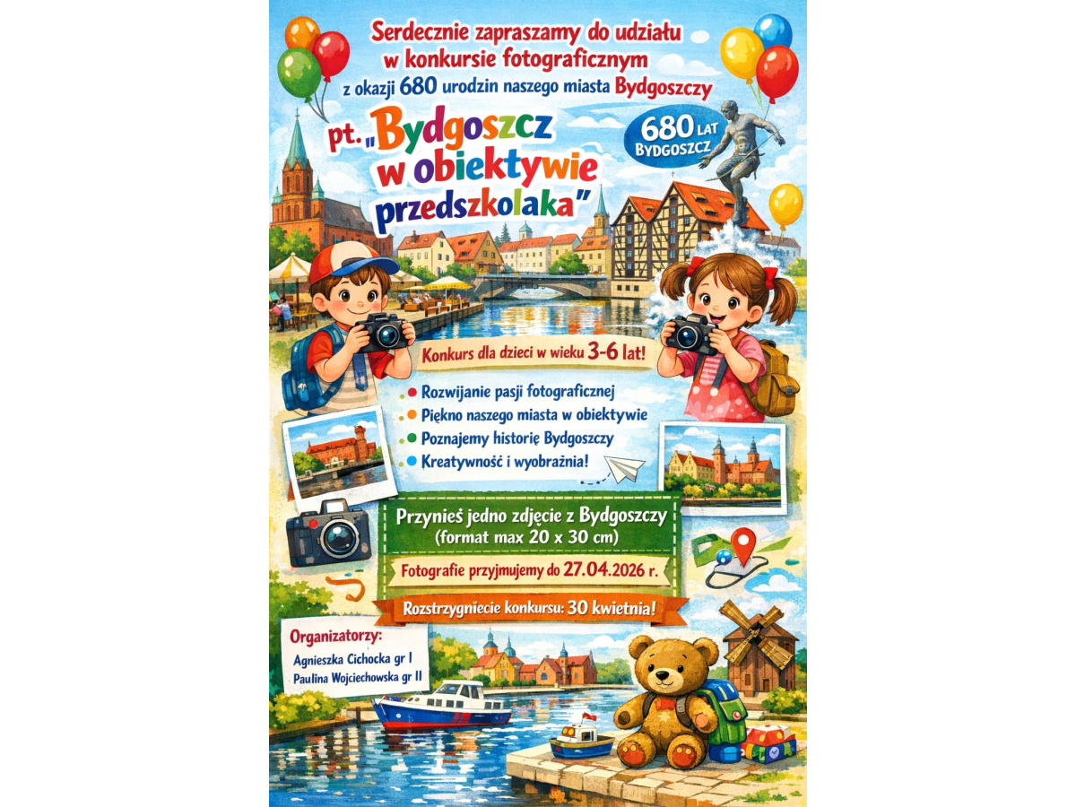Zapraszamy do wzięcia udziału w konkursie "Bydgoszcz w obiektywie przedszkolaka". Szczegóły na plakacie.