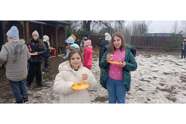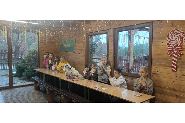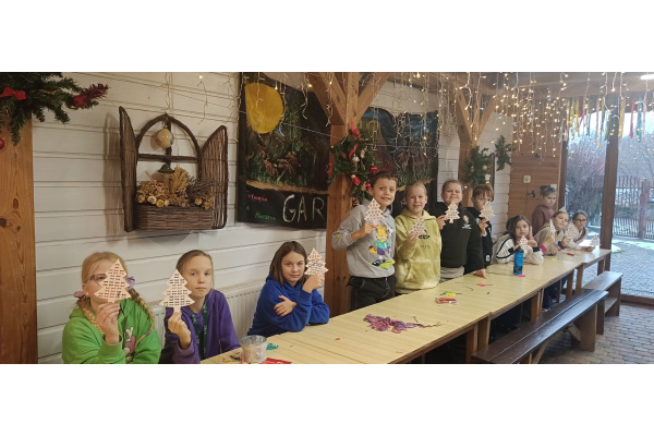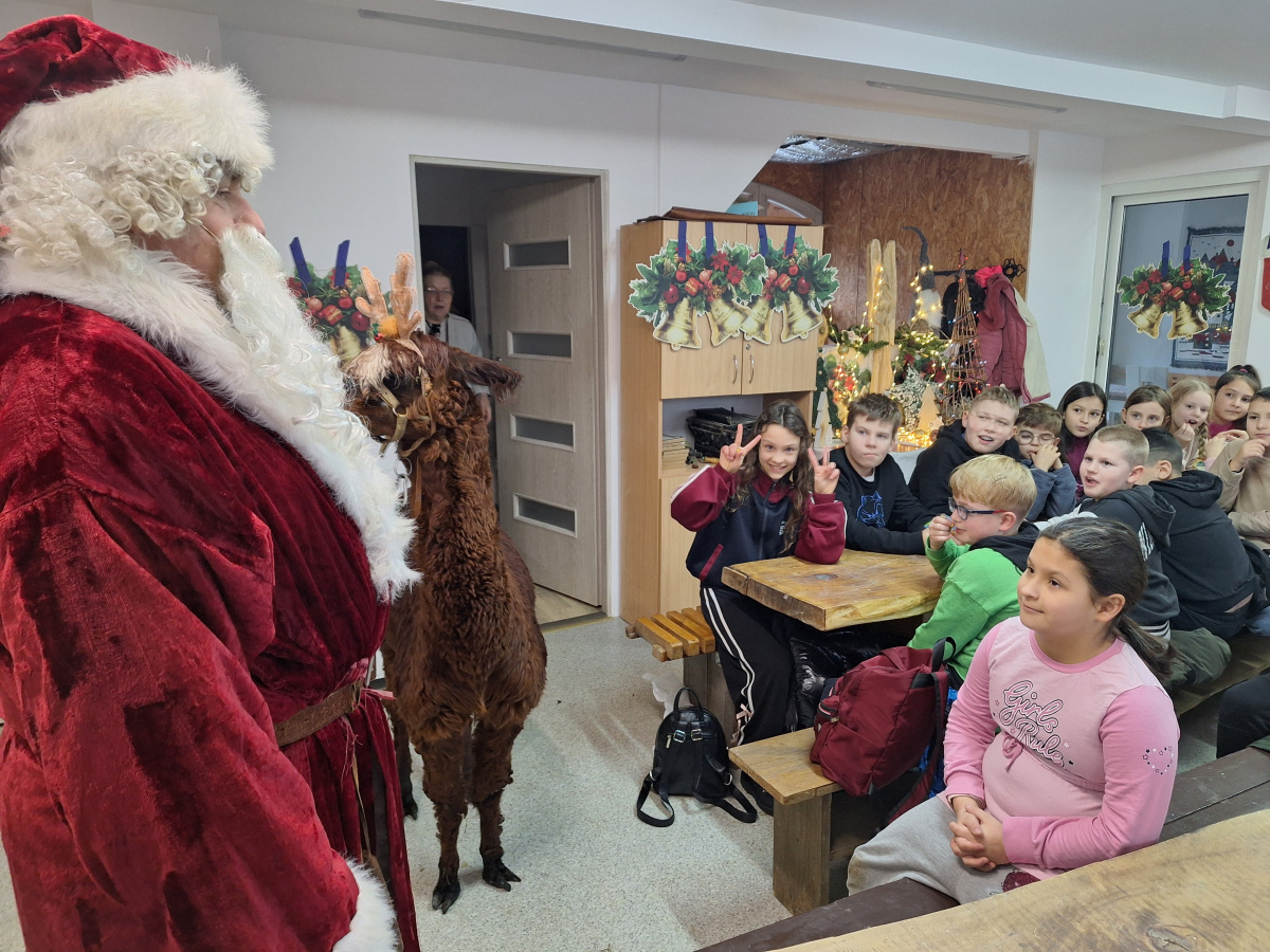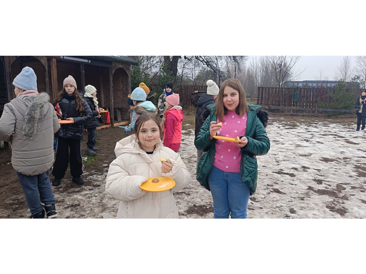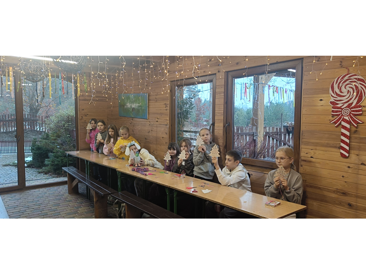 Klasy czwarte odwiedziły Wioskę Ginących Zawodów w Koronowie, gdzie wzięły udział w warsztatach ceramicznych, lepiąc świąteczne skrzaty z białej gliny. Uczniowie spotkali się również z Mikołajem i skosztowali gorących ziemniaczków z parnika babci. Podczas zajęć „Igłą malowane” tworzyli barwne choinki z włóczki, a na zakończenie czekało ognisko z kiełbaskami oraz wesoła zabawa w skansenie. To był dzień pełen radości i świątecznej atmosfery!