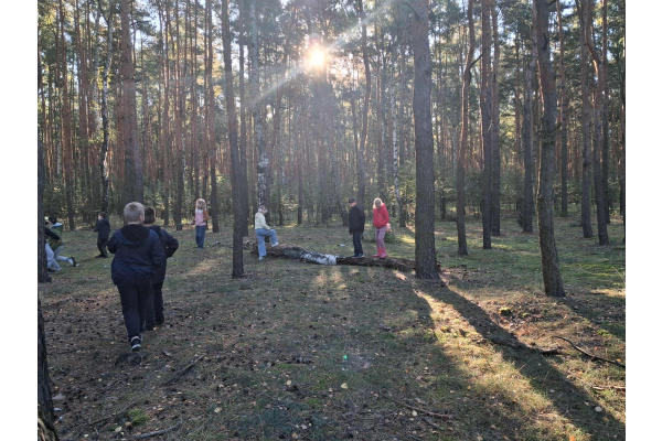 Wycieczka do lasu – dzieci obserwowały różnorodność roślin i zwierząt, uczyły się rozpoznawać gatunki drzew oraz rozmawiały o zasadach zachowania się w lesie.