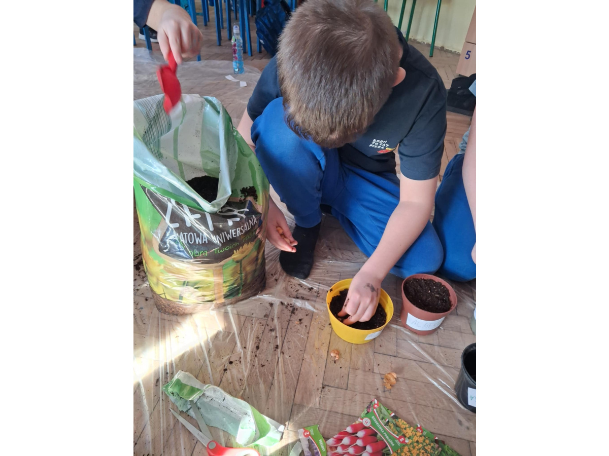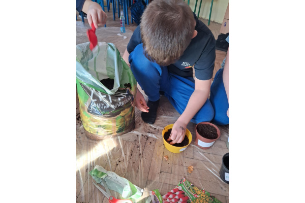 Sadzenie roślin – dzieci samodzielnie posadziły kwiaty i byliny.